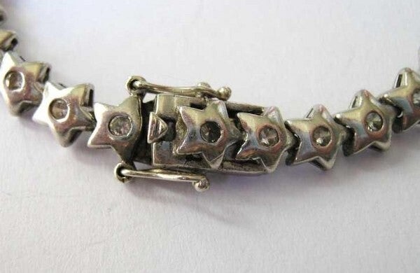 Mooie vintage armband, sterling zilveren sterren met steentjes, aan de kleur te zien bergkristal.