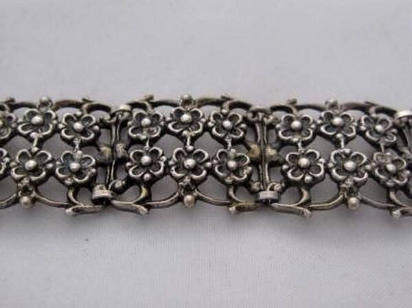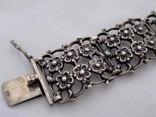 Brede zilveren antieke armband met bloemetjes, 835 (6323-160)