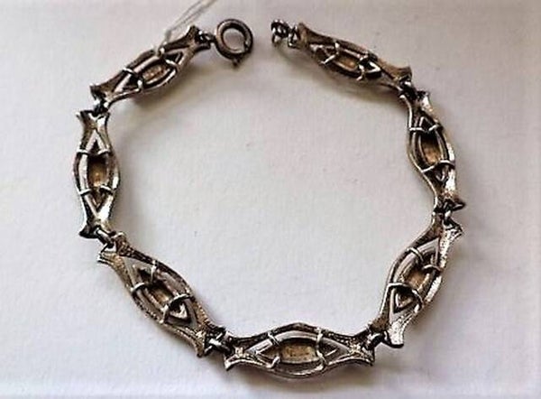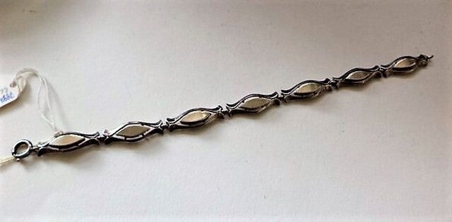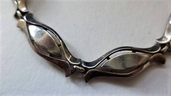 Prachtige, massieve zilveren schakelarmband met een uniek, modernistisch of Art Nouveau-geïnspireerd bladdesign.