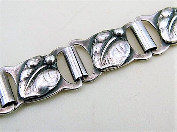 Een prachtige, authentieke vintage Deense schakelarmband van Hans Julius Larsen in de Art Nouveau-stijl, lokaal bekend als 'Skonvirke'.