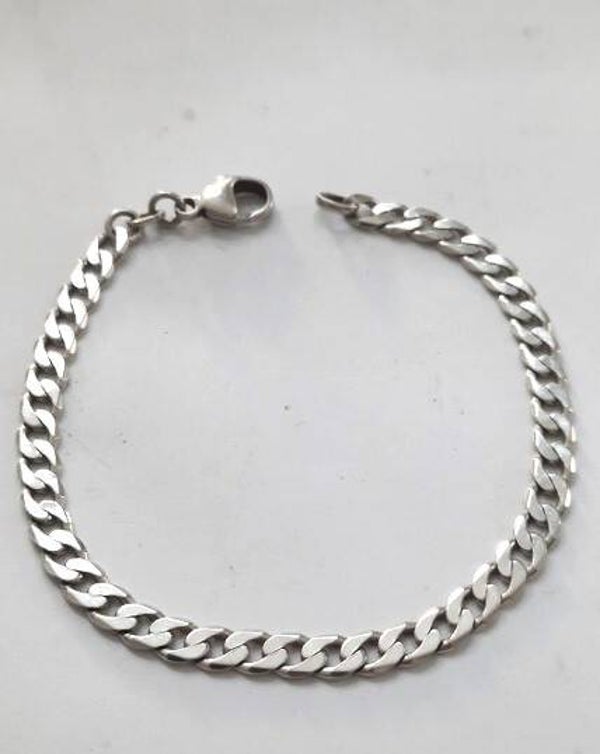De armband heeft een klassieke, platte vlakpantser schakel van 5 mm breed en een totale lengte van 19,5 cm.