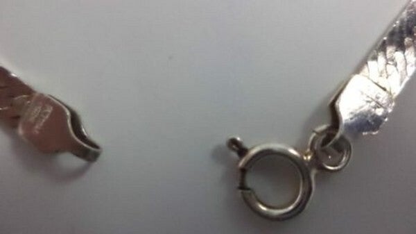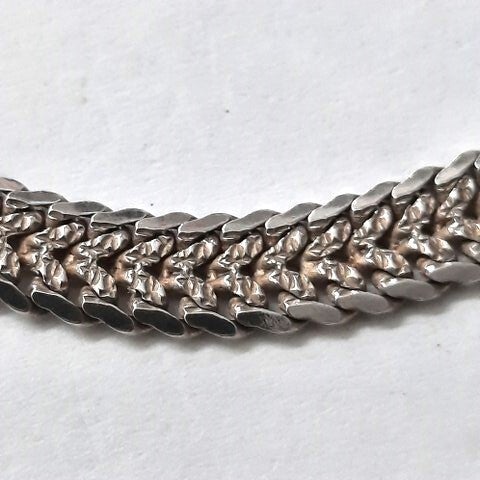 7194-448Mooie zilveren armband, geweven platte bandschakel.Gemerkt 925 Italy.Lang 18,5 cm, breed 4 mm. Veersluiting.In prima staat.