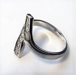 Gekruiste ring met zirkonia's, 925. (7810-71)