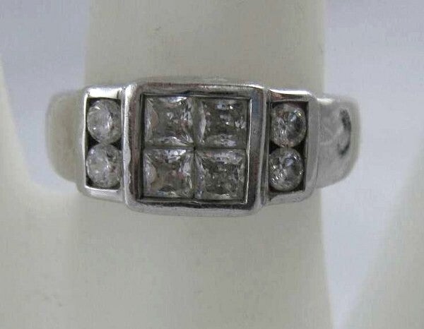 6646-1692Bijzonder mooie vintage sterling zilveren ring, bezet met bergkristallen.Kop ca 8 mm hoog.Stevige en solide ring.Gemerkt 925.Maat 16,2Als nieuw.