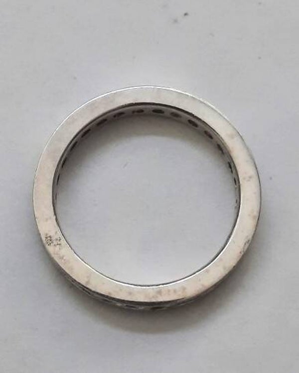 Een zilveren eternity ring (eeuwigheidsring) is een ring van sterling zilver die rondom is bezet met stenen, vaak zirkonia, wat symbool staat voor eeuwige liefde