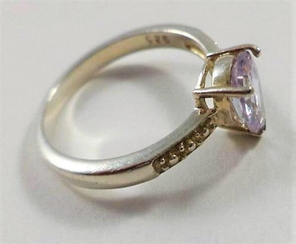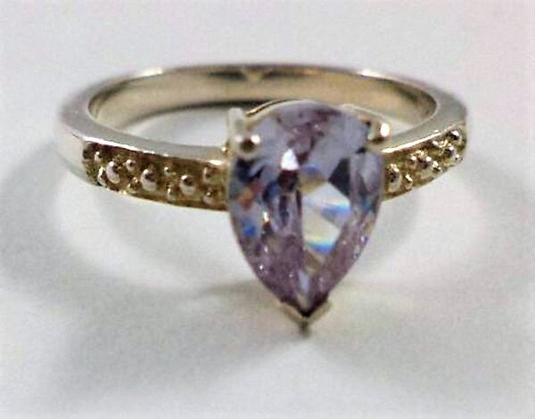 Unieke zilveren ring met peervormige lila zirkonia. (7194-1964)