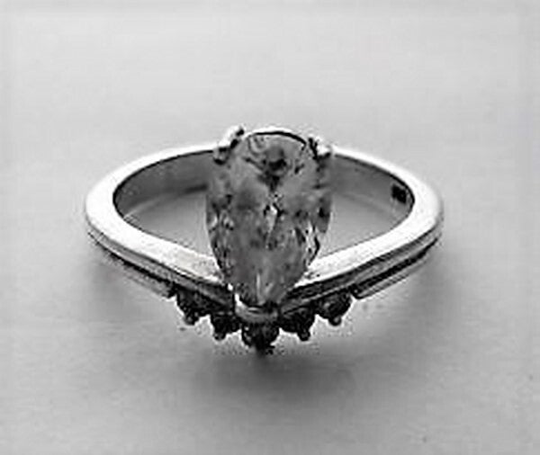 Stijlvolle zilveren ring met een schitterende heldere druppelvormige zirkonia (6 × 8 mm) als middelpunt.