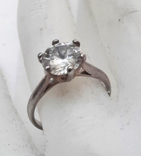 Klassieke en tijdloze zilveren solitair ring in uitstekende staat.