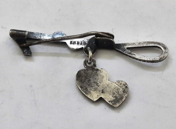 Antiek zilveren broche rijzweep, plastronspeld met dubbel hartje KH 835