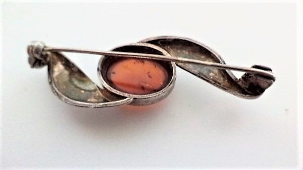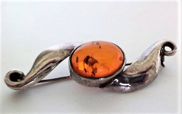 Vintage zilveren Modernistische broche met barnsteen, 925