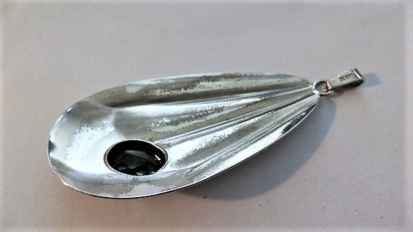 Grote vintage zilveren hanger met groene gefacetteerde steen, 835 en teken