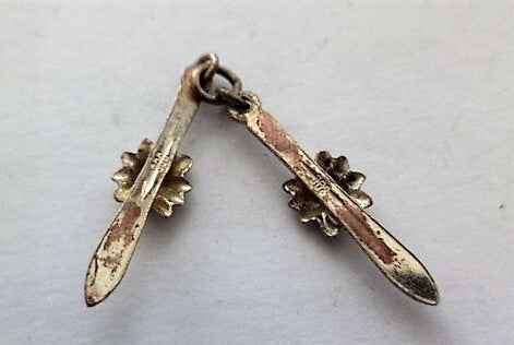Prachtig gedetailleerd vintage zilveren hangertje van twee ski's.