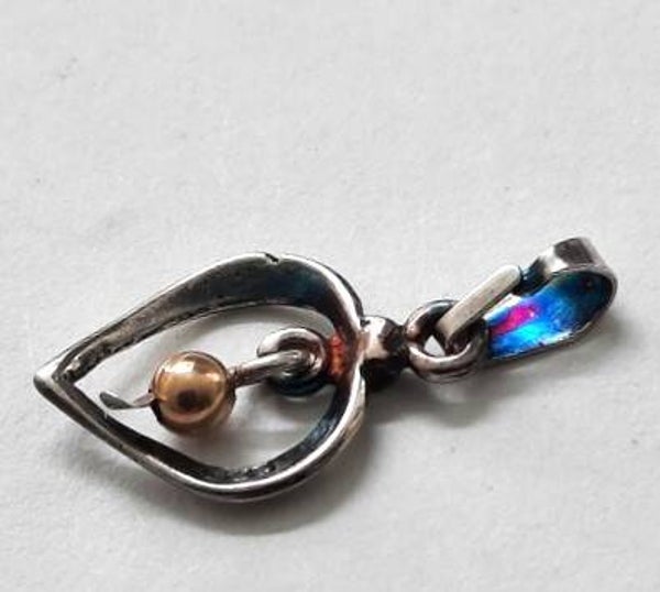 Vintage zilveren hangertje open hartje met gouden bolletje