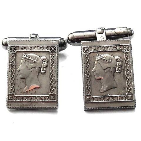 Zilveren manchetknopen One Penny Postzegel in etui