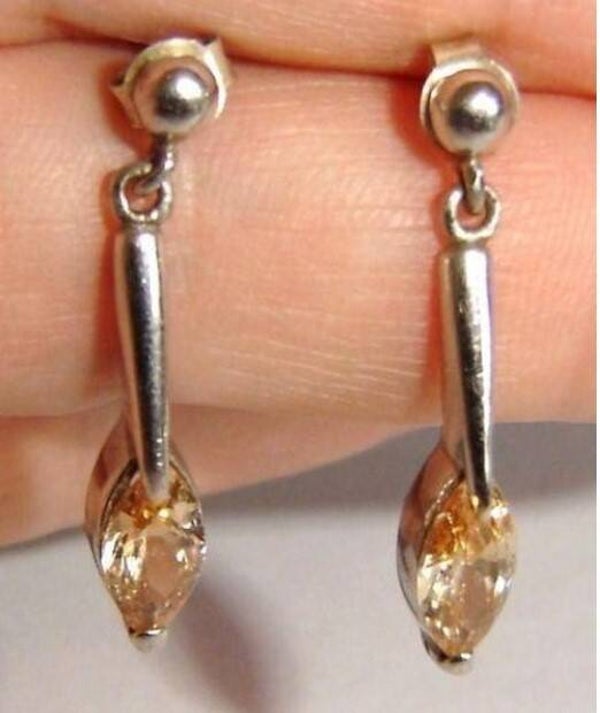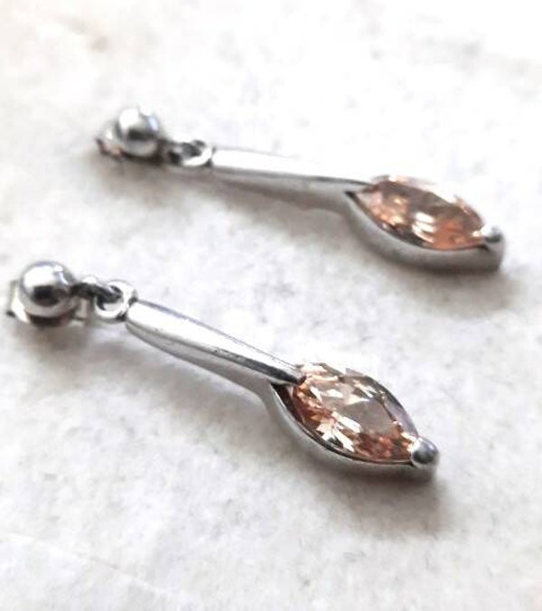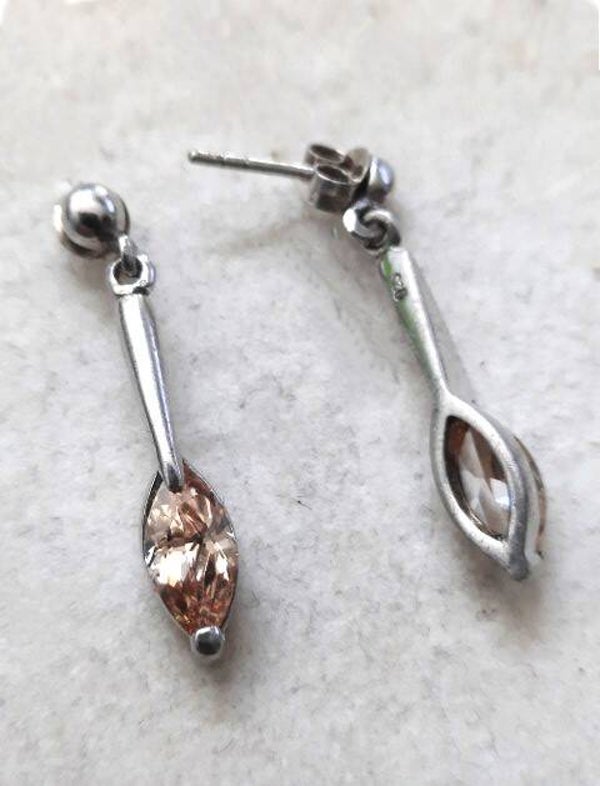 De oorbellen zijn voorzien van schitterende, peervormige (of marquise) champagnekleurige zirkonia stenen.