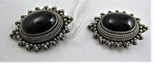 Prachtige vintage zilveren oorbellen met Onyx. Handwerk 925 (5489-838)