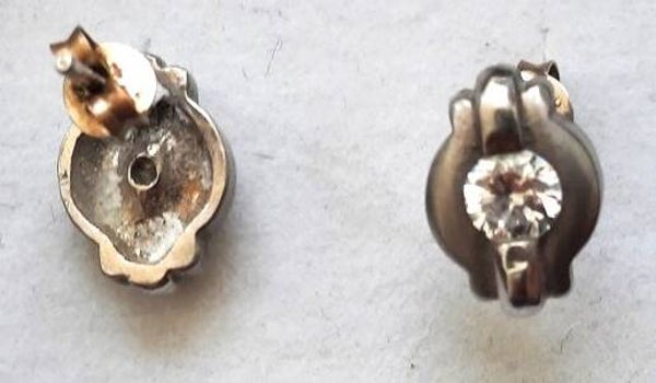 Voorzien van een heldere, briljant geslepen steen (vermoedelijk zirkonia van hoge kwaliteit).