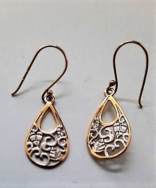 Nieuwe Gold Vermeil filigrain Ajour druppeloorbellen 925 D