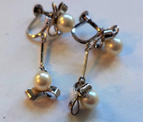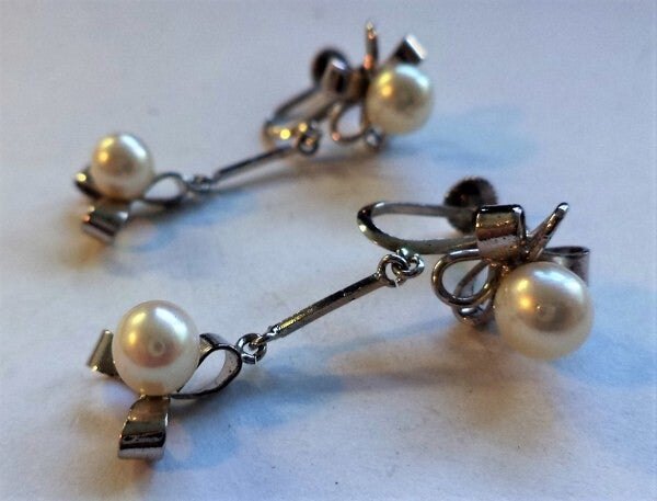 De oorbellen zijn vervaardigd van hoogwaardig zilver en voorzien van een verfijnd strik-motief, bezet met twee parels per oorbel.