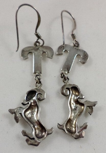 Paar unieke, gedetailleerde zilveren oorbellen met het sterrenbeeld Ram.
