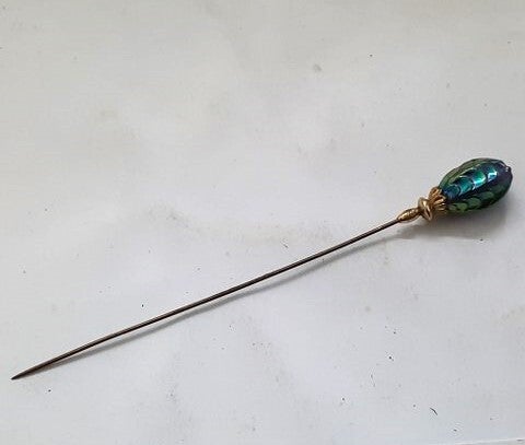 Art Nouveau hoedenspeld met iriserende glazen kop (7958-R28)