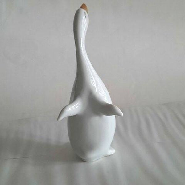 Een schitterend, minimalistisch vormgegeven porseleinen beeldje van een gans. vervaardigd door de befaamde Hongaarse fabriek Hollóháza.