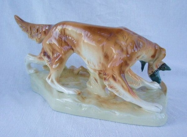 Antiek Royal Dux beeld – Ierse Setter met prooi (004)