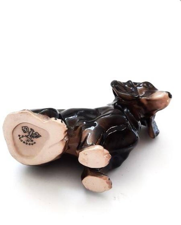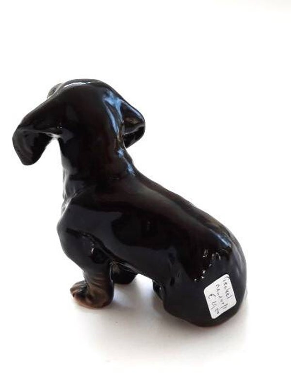 Prachtig, gedetailleerd beeldje van een zittende teckel van het kwaliteitsmerk Neundorf.