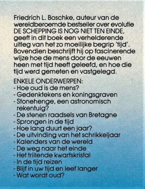Boschke geeft in dit boek een verhelderende uitleg van het moeilijke begrip "tijd".