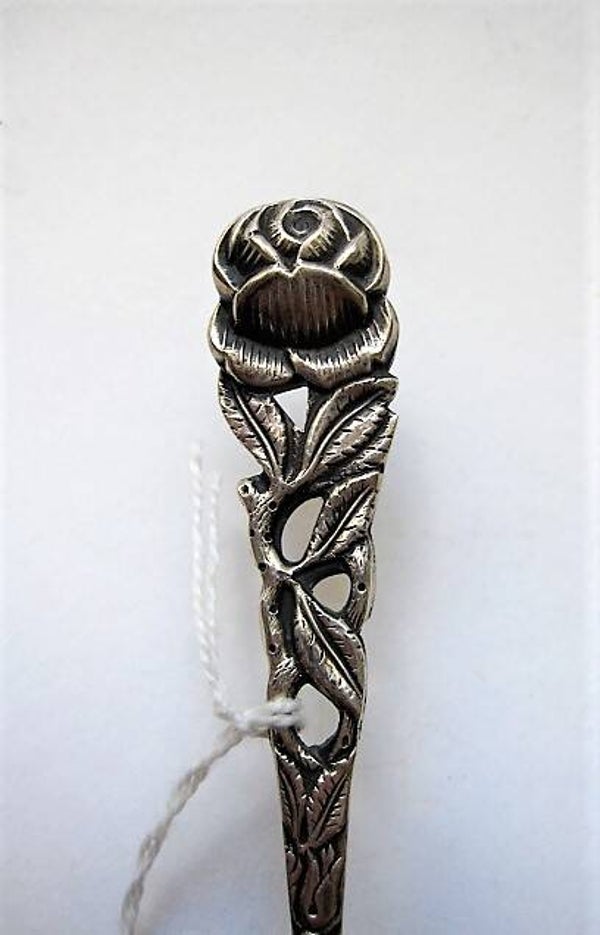 In goede vintage conditie. Het zilver heeft een mooie glans en het gedetailleerde roosmotief is nog zeer scherp.