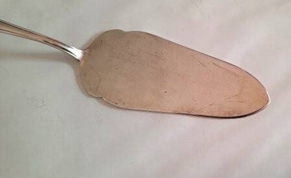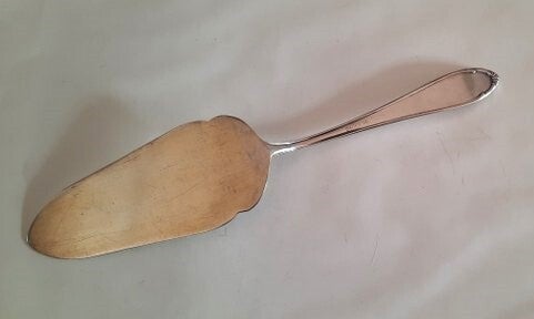De taartschep verkeert in een goede, gebruikte staat. Er zijn lichte gebruiksporen zichtbaar die passen bij de leeftijd, maar de zilverlaag is nog mooi intact.