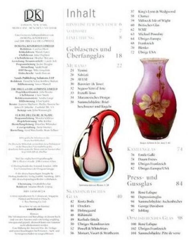 Über 1.000 charakteristische Objekte werden mit Farbfotografie und Angaben zu Preis, Größe, den wichtigsten Merkmalen und Bezugsquellen vorgestellt - von Lalique bis zu Tiffany, von geblasenem bis zu geschliffenem Glas, von Vasen und Gläsern über Parfumflakons bis zu Schmuck.