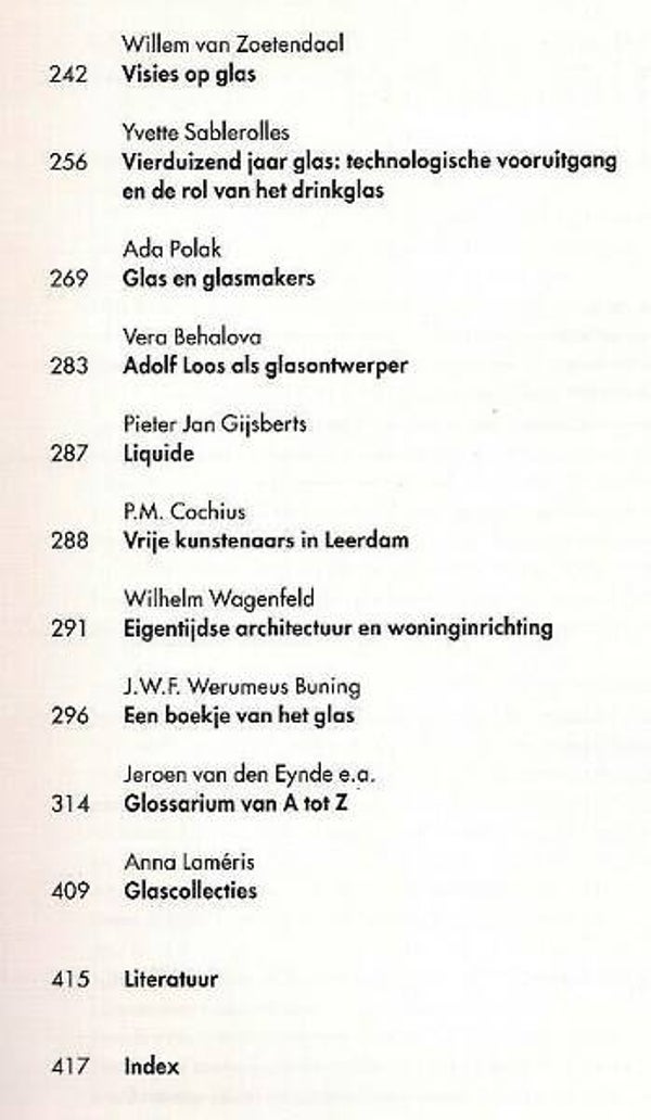 Achterin het boek bevindt zich een glossarium waar je onder andere technieken, nabewerkingtechnieken, bijzondere soorten drinkglazen, stijlen en scholen enzovoort kunt terug vinden.