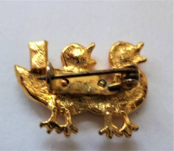 Vogel - Vintage broche twee kwetterende vogeltjes