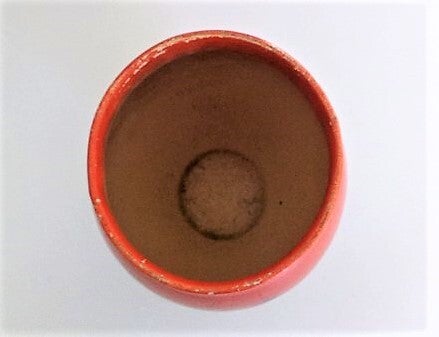 De kleur verloopt van helderrood aan de bovenkant naar een donkerbruine, gespikkelde textuur aan de onderkant en de voet.