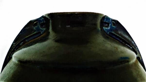 Een iconisch kenmerk van dit ontwerp zijn de twee gestileerde hagedissen die als handgrepen fungeren en vanuit de hals over de schouders van de vaas naar beneden lopen.