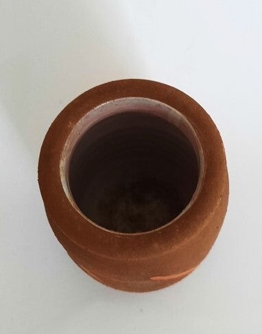 Dit object is uitgevoerd in een warme, aardse bruine klei (terracotta-look) met een ruw, mat oppervlak.