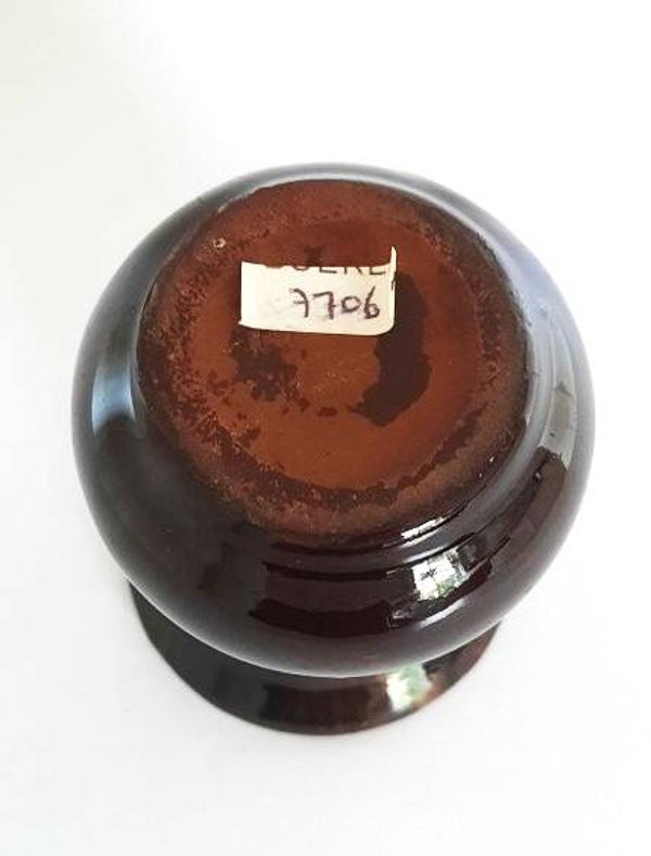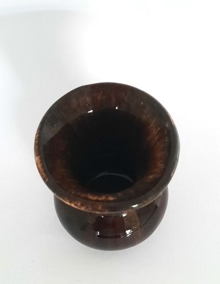 Hoogglans bruin met een subtiel 'druip' of gemêleerd effect, typisch voor Duits aardewerk uit de mid-century periode.