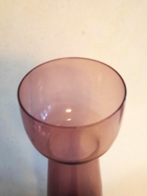 De vaas heeft een prachtige, diep paarse kleur (amethist) en een tijdloos, slank ontwerp.