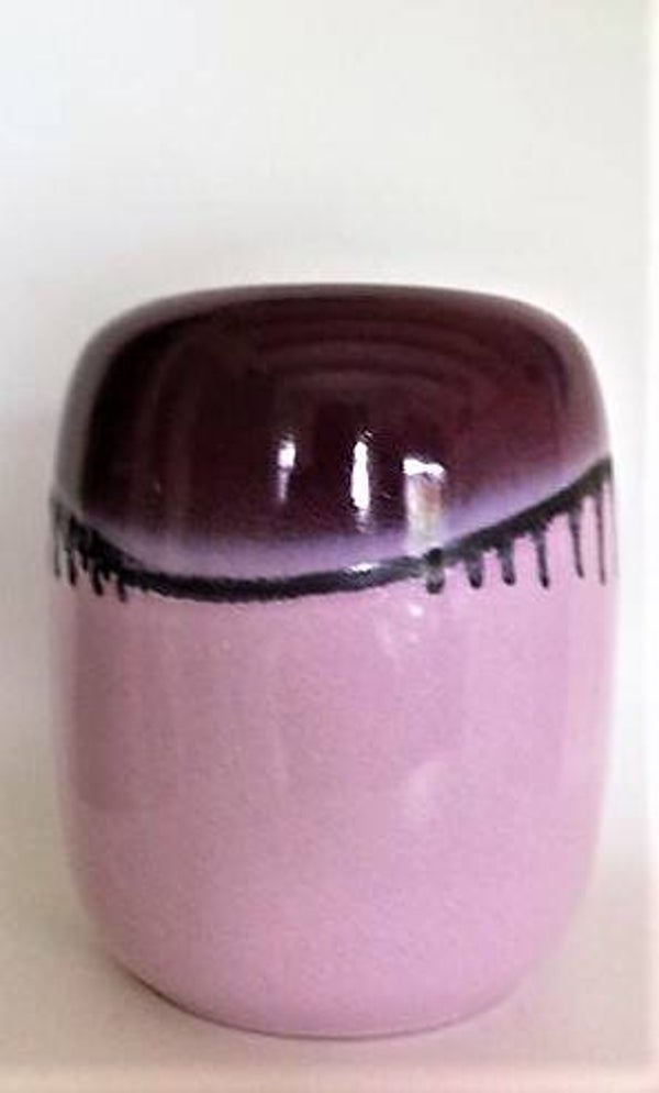 De vaas heeft een iconisch 'drip glaze' decor: een dieppaarse, die in karakteristieke druppels overloopt in een lichte lila-roze basis.