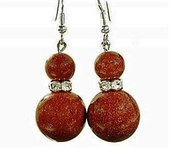 Paar schitterende, ongedragen oorbellen van goudsteen (ook wel goudvloed genoemd).