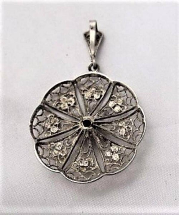 Antieke zilveren filigrain hanger – Bloemenmotief 835 (6590-422)