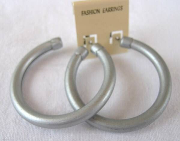 Stijlvolle, moderne driekwart oorringen met een matte, grijs-metalen afwerking.
