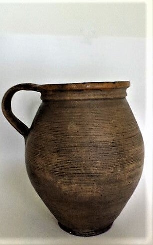 Deze kruik is een sfeervol voorbeeld van Europees boerenkeramiek uit het begin van de 20e eeuw.