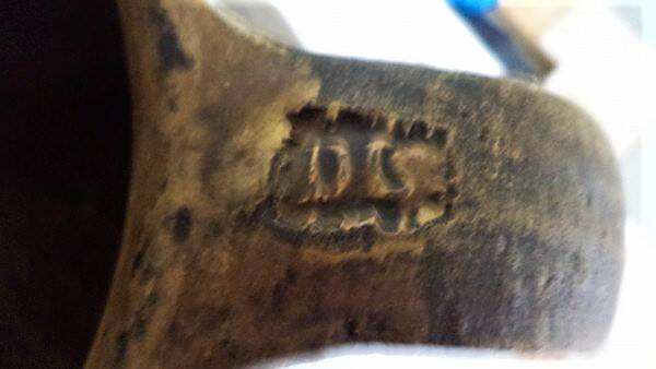 Het object is voorzien van een stevig verticaal lintoor, waarop de signatuur 'DL' duidelijk zichtbaar is.