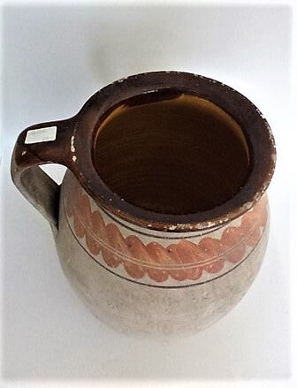 Authentieke, antieke Hongaarse aardewerken kruik (ook wel köcsög genoemd), waarschijnlijk afkomstig uit de beroemde regio Gömör.