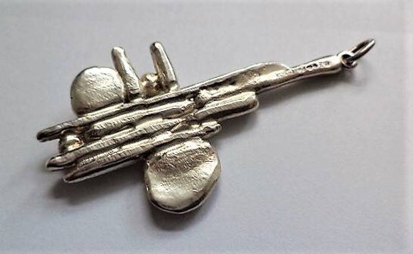 Schitterende, abstracte zilveren hanger in brutalistische stijl.