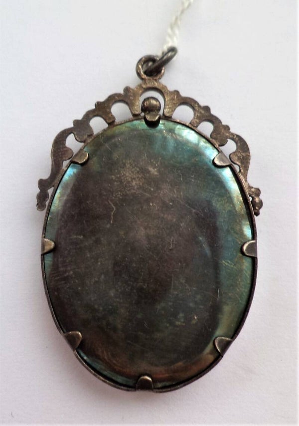 Antiek Jugendstil Medaillon, verzilverd, met handingekleurd portret (612-8)