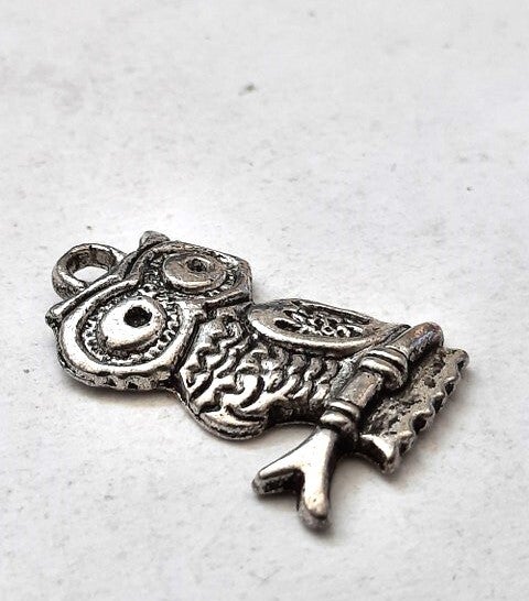 Leuk verzilverd hangertje Uil op tak (5365-94)
