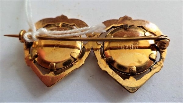 Dit type sieraad, ook wel een "sweetheart"-broche genoemd, stamt uit de periode rond de eeuwwisseling (Jugendstil/Victoriaans).